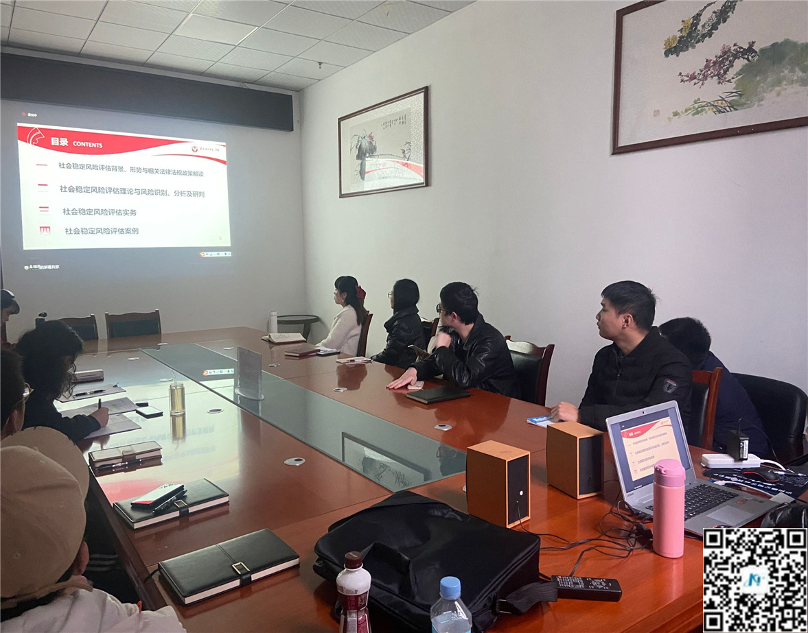 12月4日5日,為提高我司技術(shù)人人員專(zhuān)業(yè)知識(shí),公司領(lǐng)導(dǎo)邀約西南政法大學(xué)政治與公共管理學(xué)院周燕博士為我司技術(shù)人員指導(dǎo)講解社會(huì)風(fēng)險(xiǎn)穩(wěn)定評(píng)估報(bào)告編制規(guī)范。